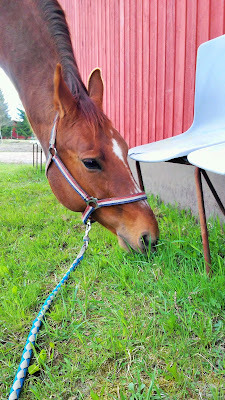 Molemmat ovat siis päässeet jälleen kerran vain kävelytykseen ja Rasse halien ja pusujen kohteeksi sekä namien saajaksi. Paappa on vaan niin <3 Tämä saikku on tehnyt yhdessä asiassa ainakin hyvää, nimittäin meidän luottamus ja suhde on parantunut huimasti sekä Rasse on ollut todella hyväntuulinen ja huomionkipeä. Sitten, kun vihdoin päästään treenaamaan täysillä niin voi ajatella, että molempien fiilis on aivan uskomaton. Me molemmat odotamme niiin hurjan paljon maastoesteitä. Ja jo ensimmäinen estevalkka voi olla hevosen osalta aikamoista hulabaloota :D. Rassella oli suunnattoman hyvä työmoraali ja fiilis jo silloin, kun mentiin 10min ravia vaihtaen suuntaa ja 3&3 kierrosta laukkaa. Se meni rennosti, korvat höröllä ja tyytyväisenä.